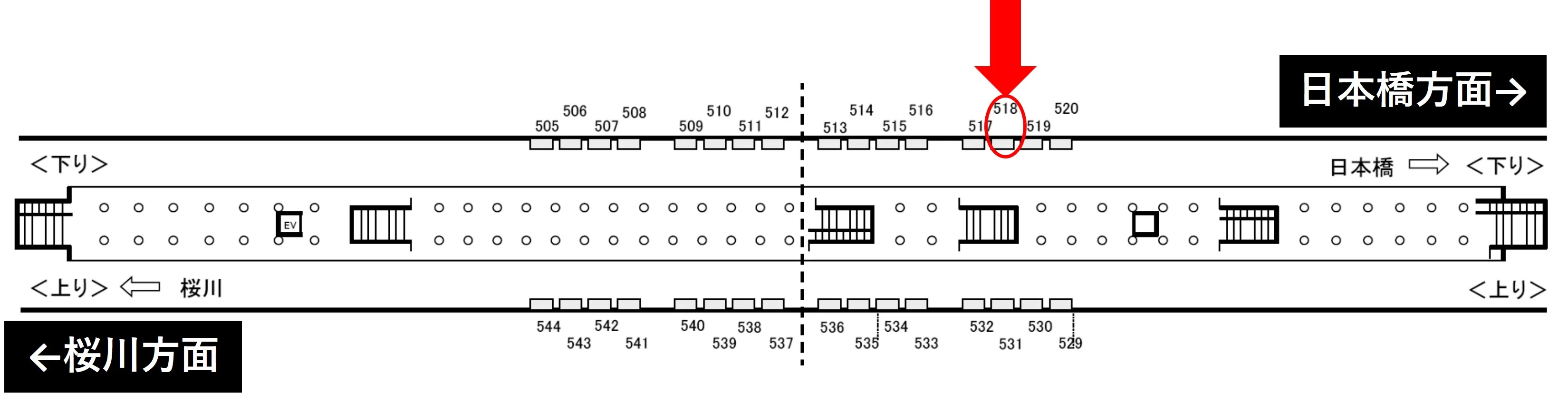 ホーム上に設置されているため、日本橋方面の利用者に向けたPRが有効です。