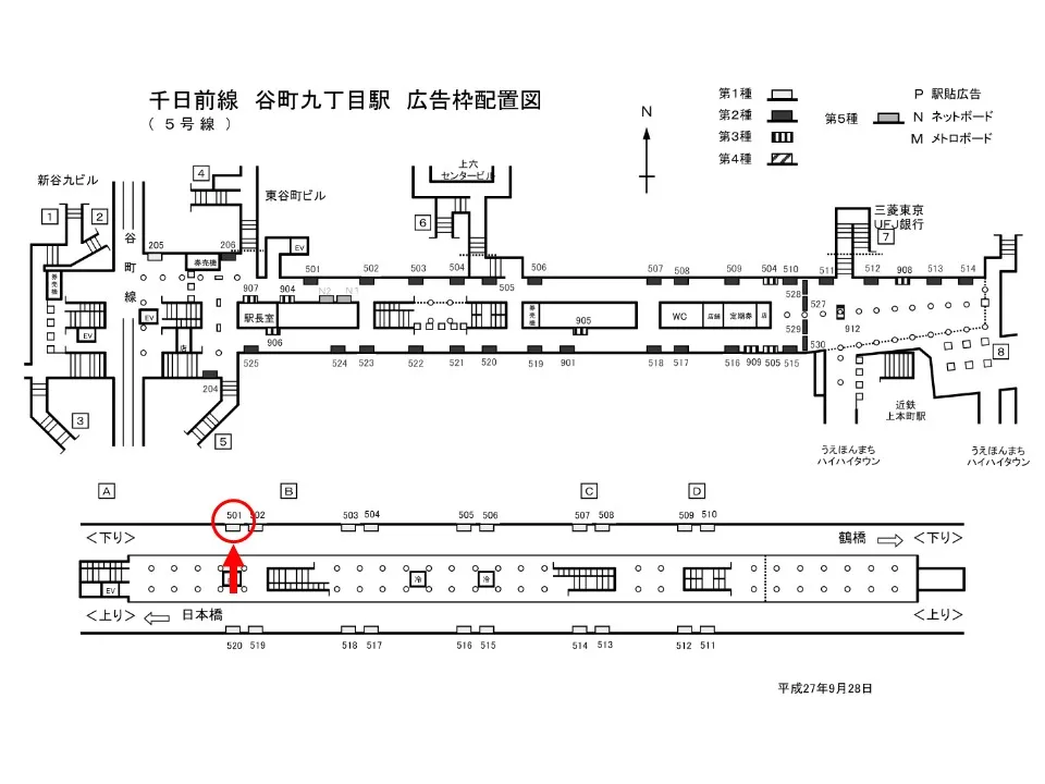 【看板】OsakaMetro 谷町九丁目駅 ホーム No.1-501