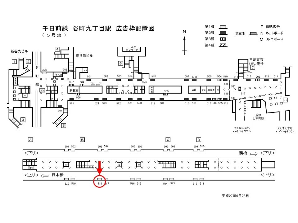【看板】OsakaMetro 谷町九丁目駅 ホーム No.1-501