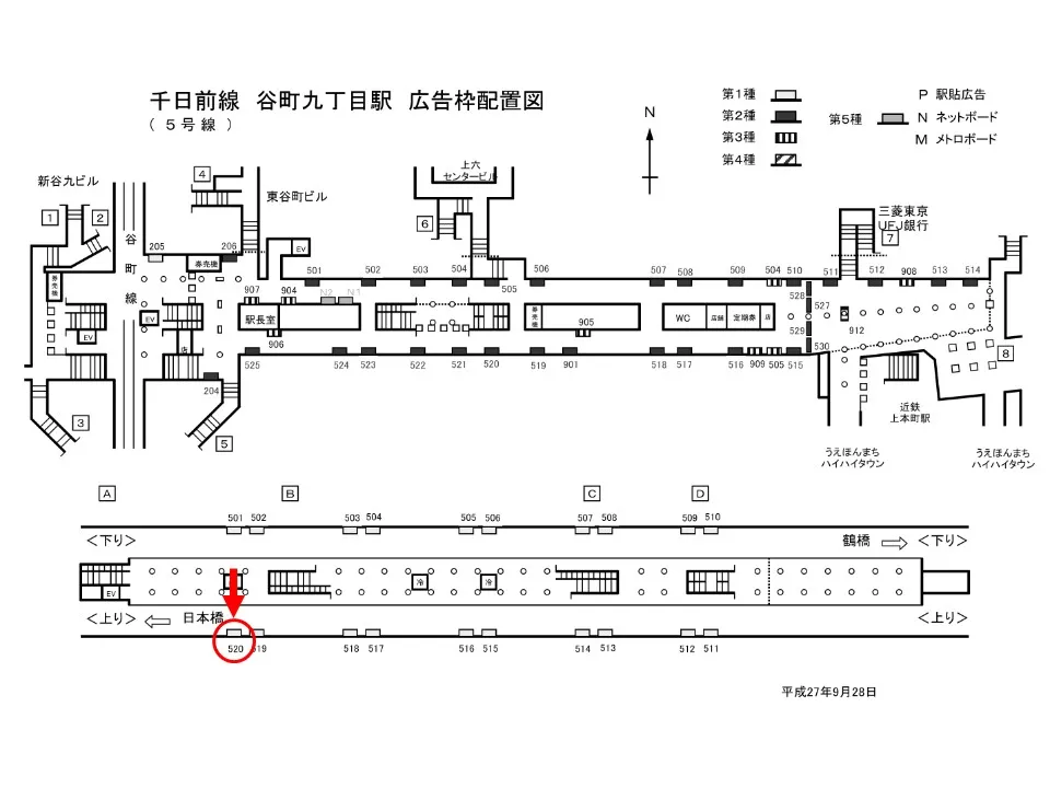 【看板】OsakaMetro 谷町九丁目駅 ホーム No.1-503