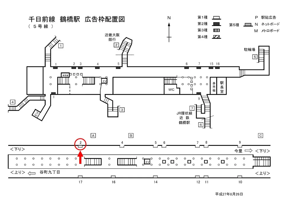 【看板】OsakaMetro 鶴橋駅 ホーム No.1-17