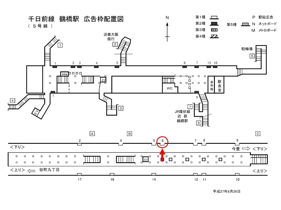 【看板】OsakaMetro 鶴橋駅 ホーム No.1-6
