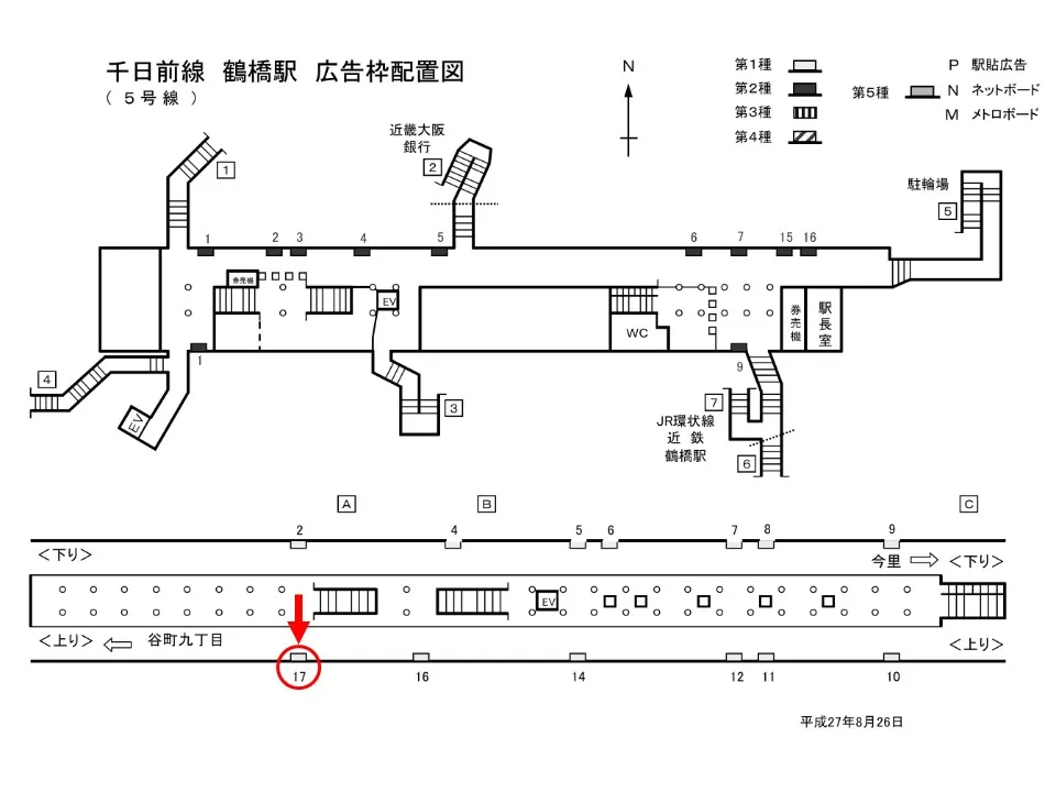 【看板】OsakaMetro 鶴橋駅 ホーム No.1-17