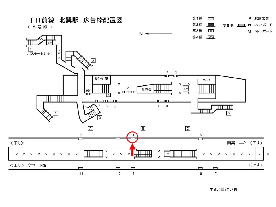 【看板】OsakaMetro 北巽駅 ホーム No.1-4