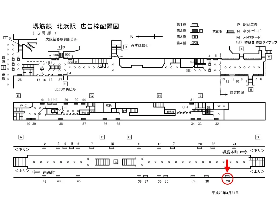 【看板】OsakaMetro 北浜駅 ホーム No.1-28