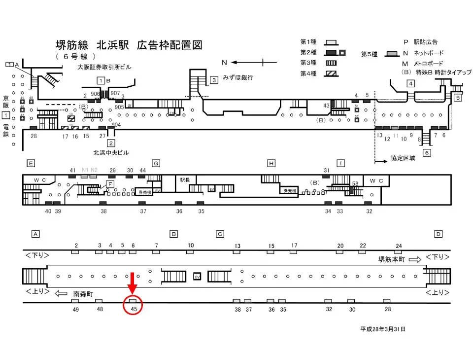 【看板】OsakaMetro 北浜駅 ホーム No.1-45