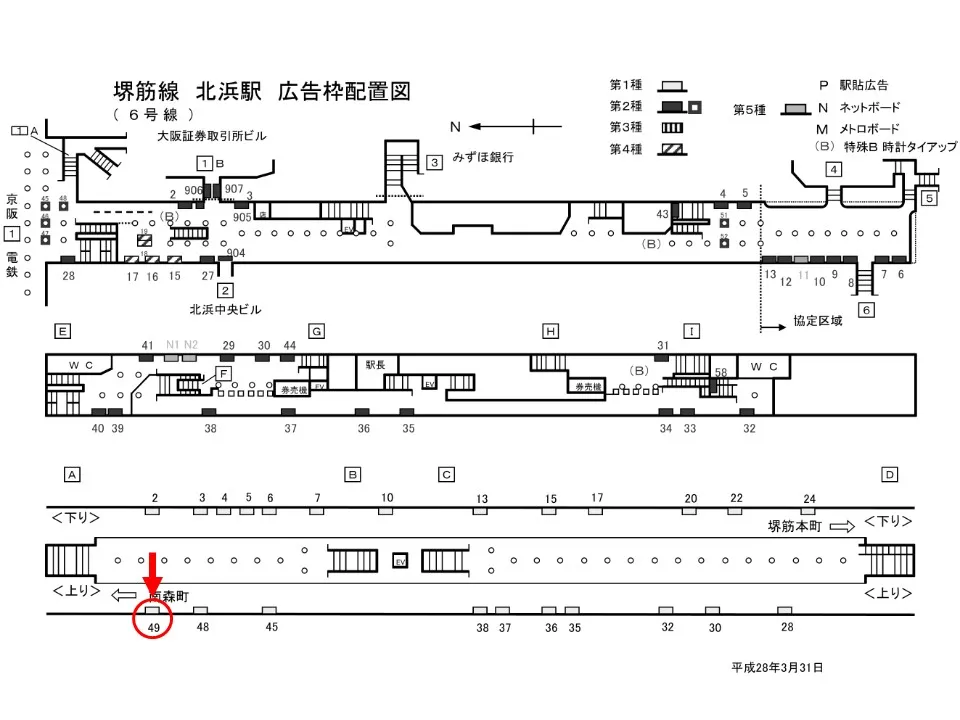 【看板】OsakaMetro 北浜駅 ホーム No.1-49