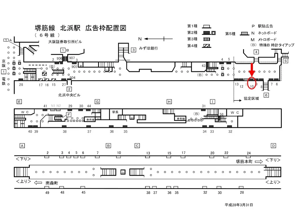 【看板】OsakaMetro 北浜駅 ホーム No.1-10