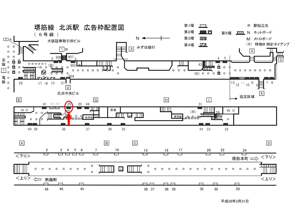 【看板】OsakaMetro 北浜駅 ホーム No.1-28
