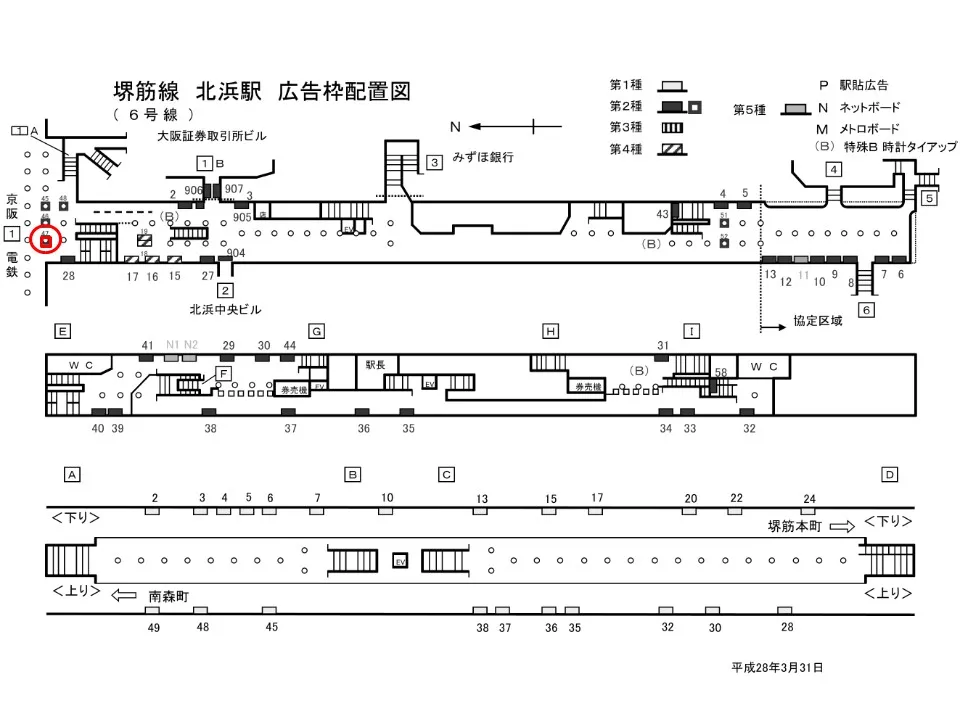 【看板】OsakaMetro 北浜駅 ホーム No.1-30