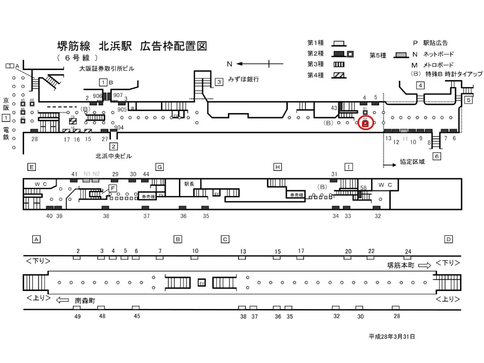 【看板】OsakaMetro 北浜駅 ホーム No.1-30