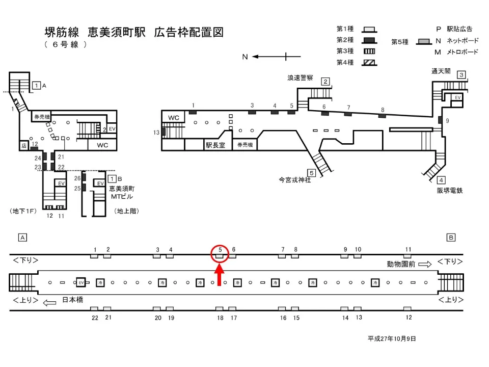 【看板】OsakaMetro 恵美須町駅 ホーム No.1-5
