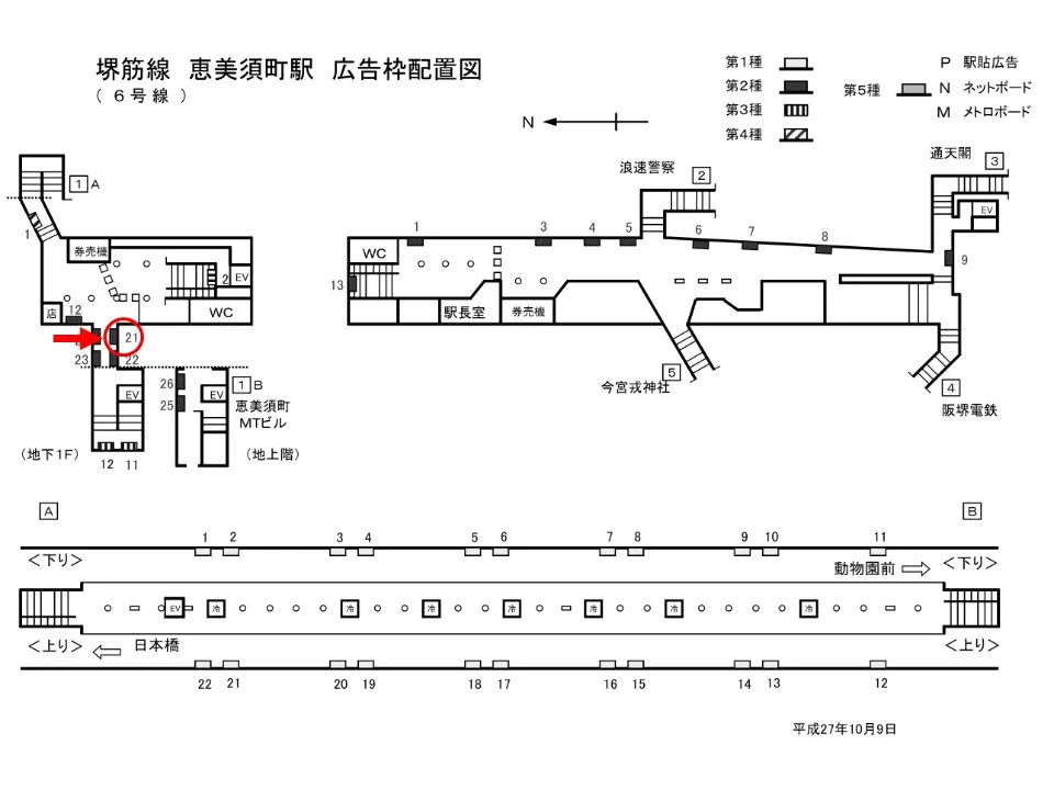 【看板】OsakaMetro 恵美須町駅 ホーム No.1-21