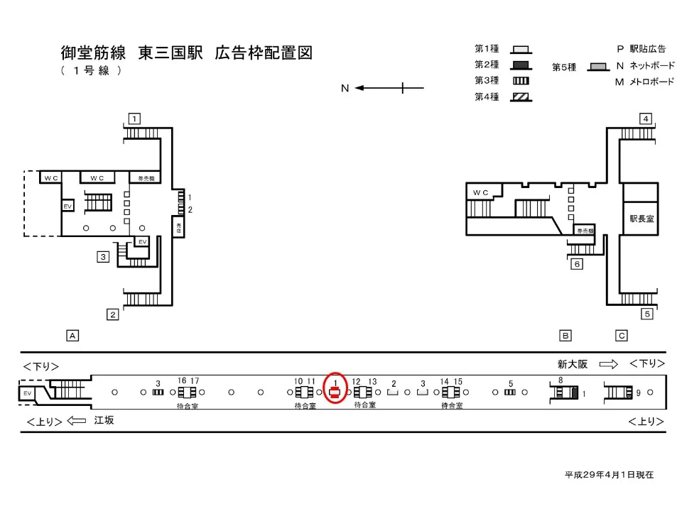 【看板】Osaka Metro東三国駅 ホーム No.1-1