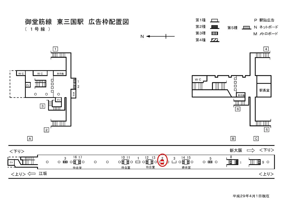 【看板】Osaka Metro東三国駅 ホーム No.1-2