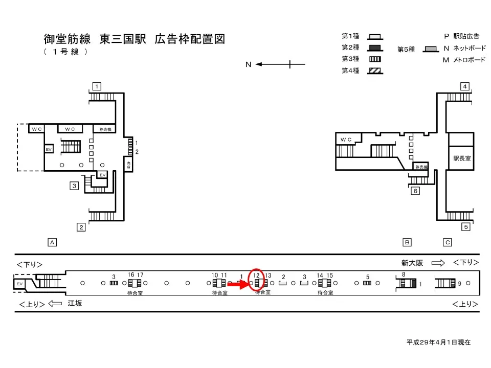 【看板】Osaka Metro東三国駅 ホーム No.3-12