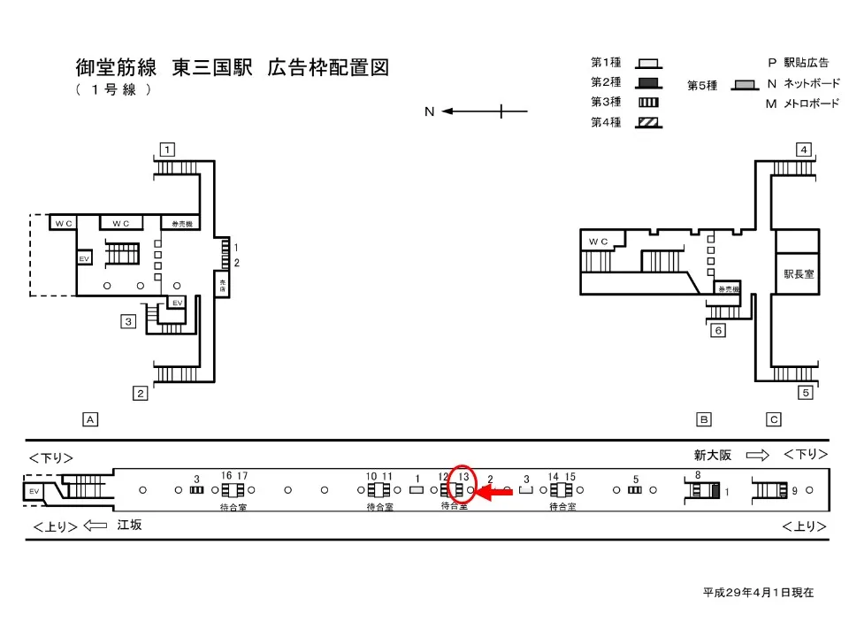 【看板】Osaka Metro東三国駅 ホーム No.3-13