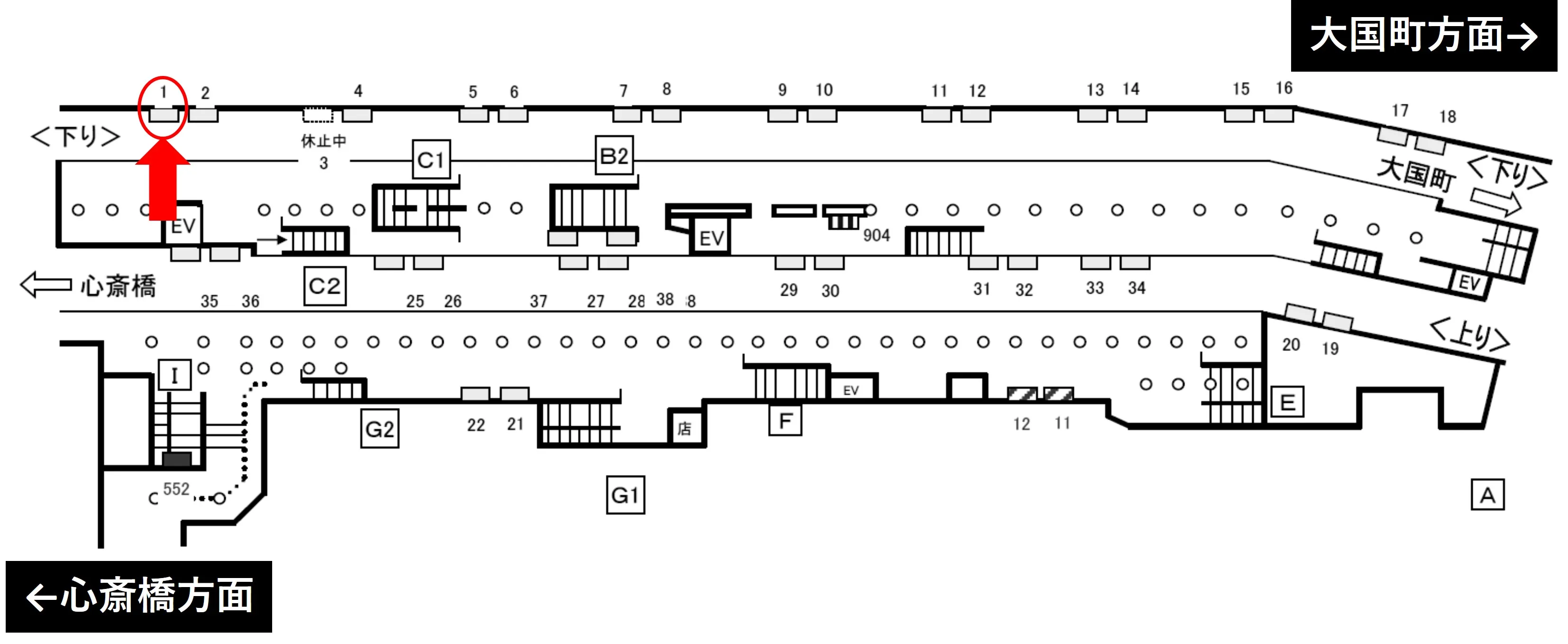 【看板】OsakaMetro なんば駅 ホーム No.1-514