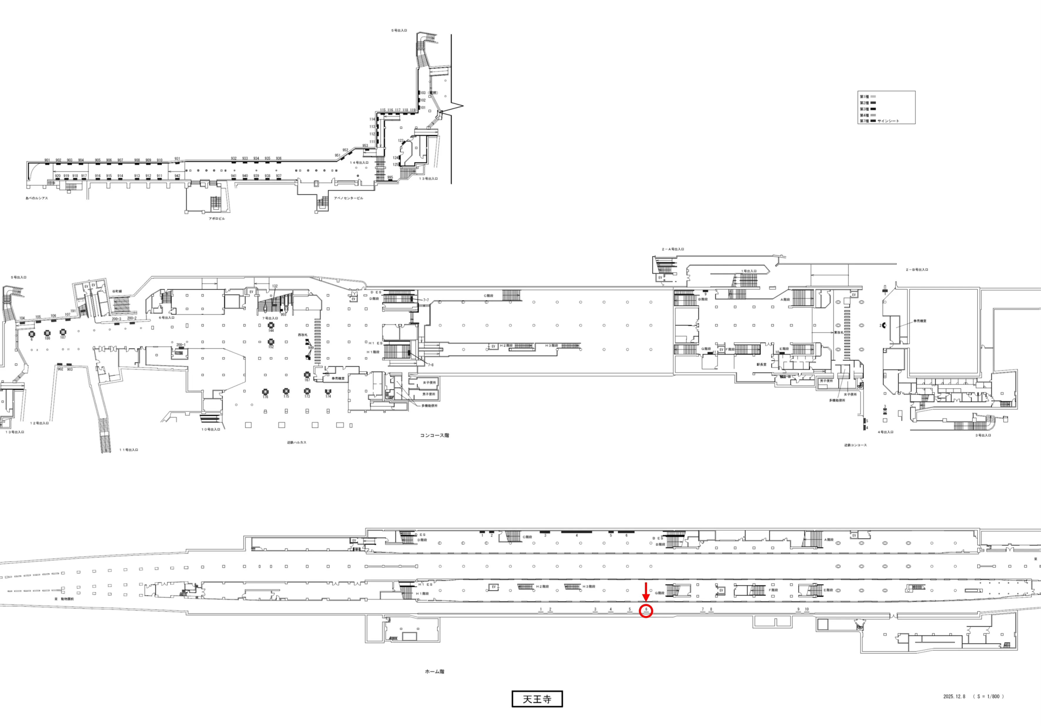 【看板】Osaka Metro天王寺駅 ホーム No.1-6