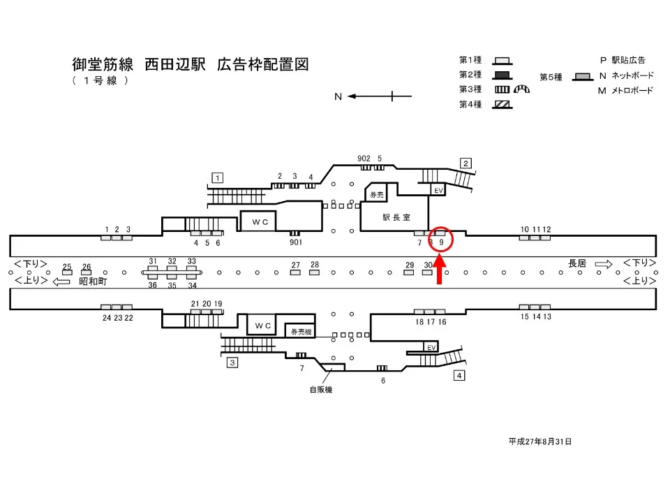 【看板】Osaka Metro西田辺駅 ホーム No.1-9