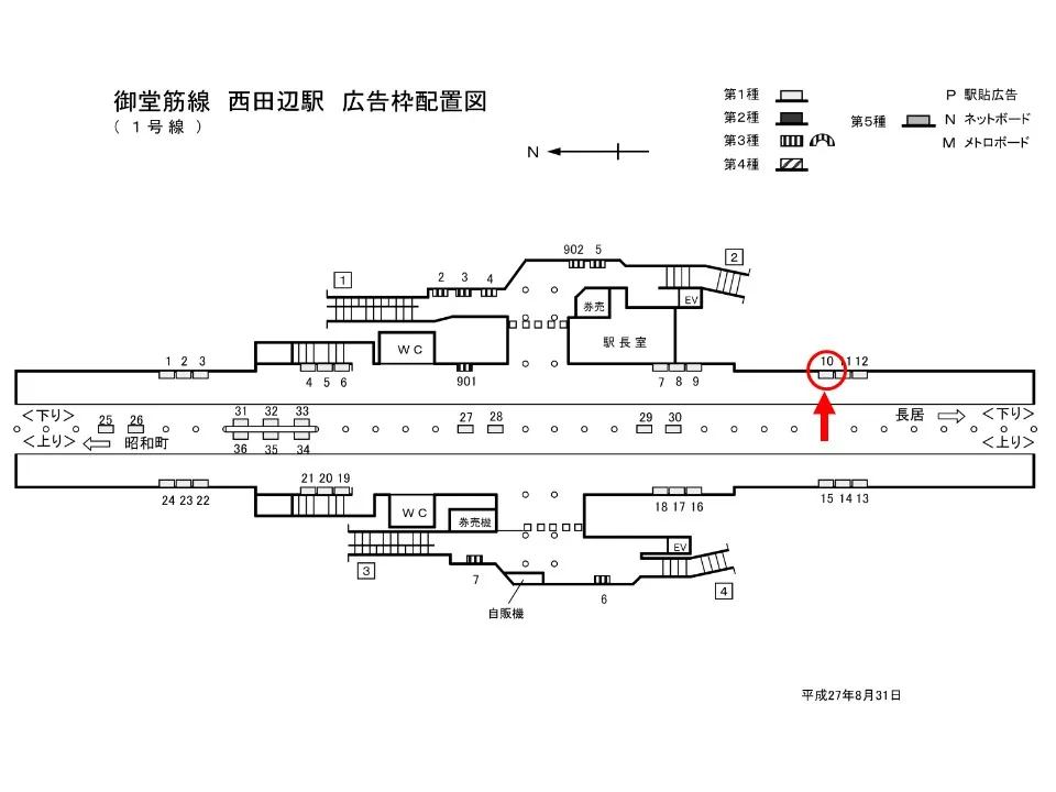 【看板】Osaka Metro西田辺駅 ホーム No.1-10