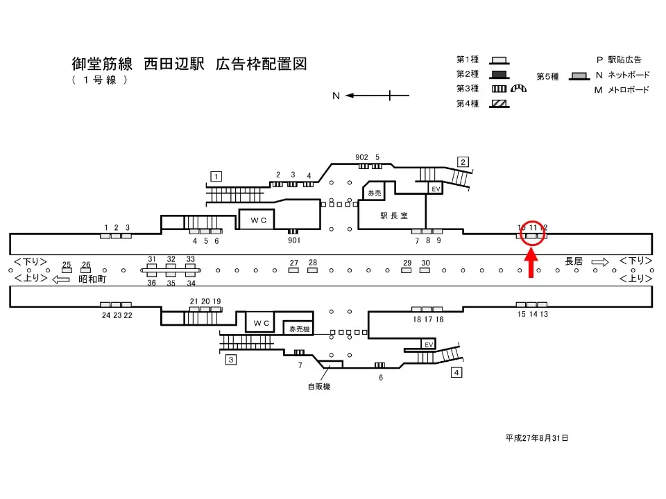 【看板】Osaka Metro西田辺駅 ホーム No.1-1