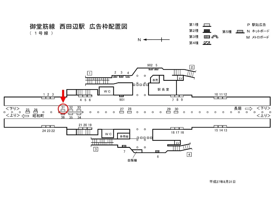 【看板】Osaka Metro西田辺駅 ホーム No.1-31