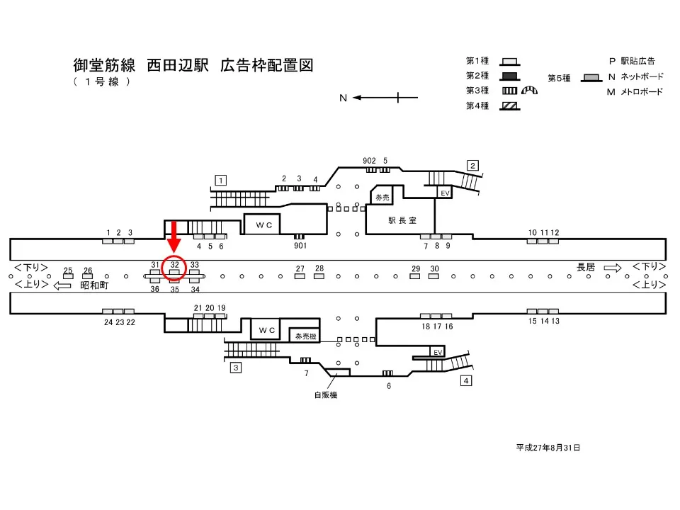 【看板】Osaka Metro西田辺駅 ホーム No.1-32