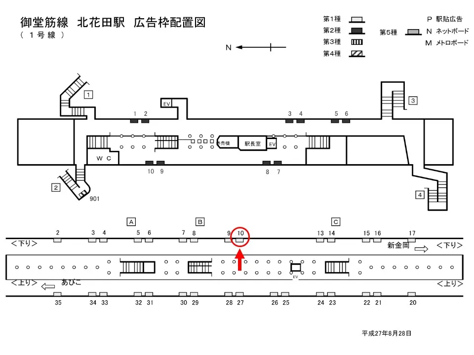 【看板】Osaka Metro北花田駅 ホーム No.1-10