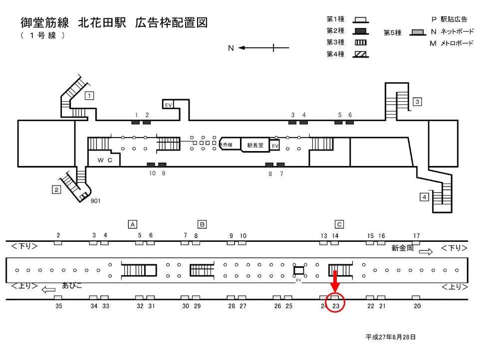 【看板】Osaka Metro北花田駅 ホーム No.1-23