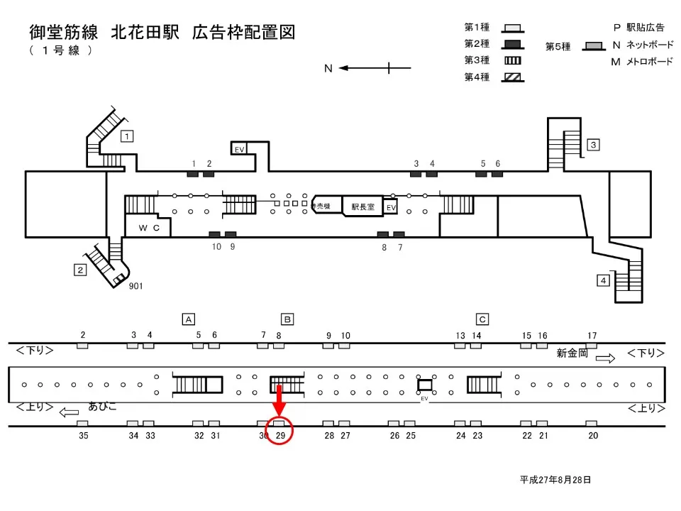 【看板】Osaka Metro北花田駅 ホーム No.1-29