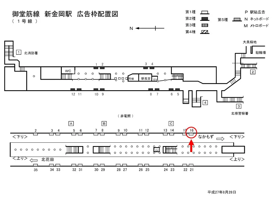 【看板】Osaka Metro新金岡駅 ホーム No.1-16