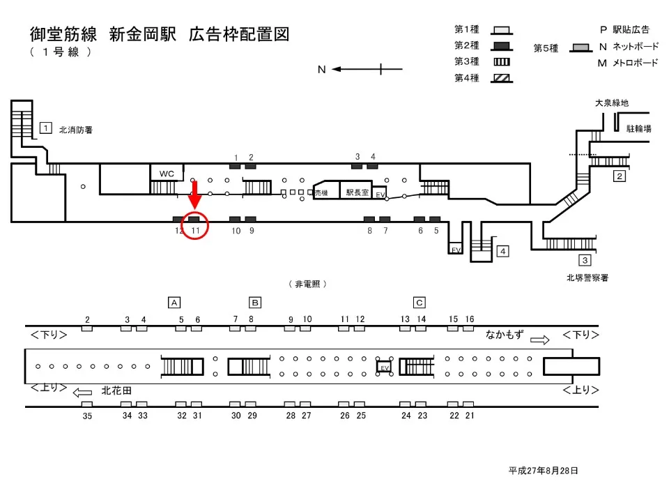 【看板】Osaka Metro新金岡駅 ホーム No.1-28