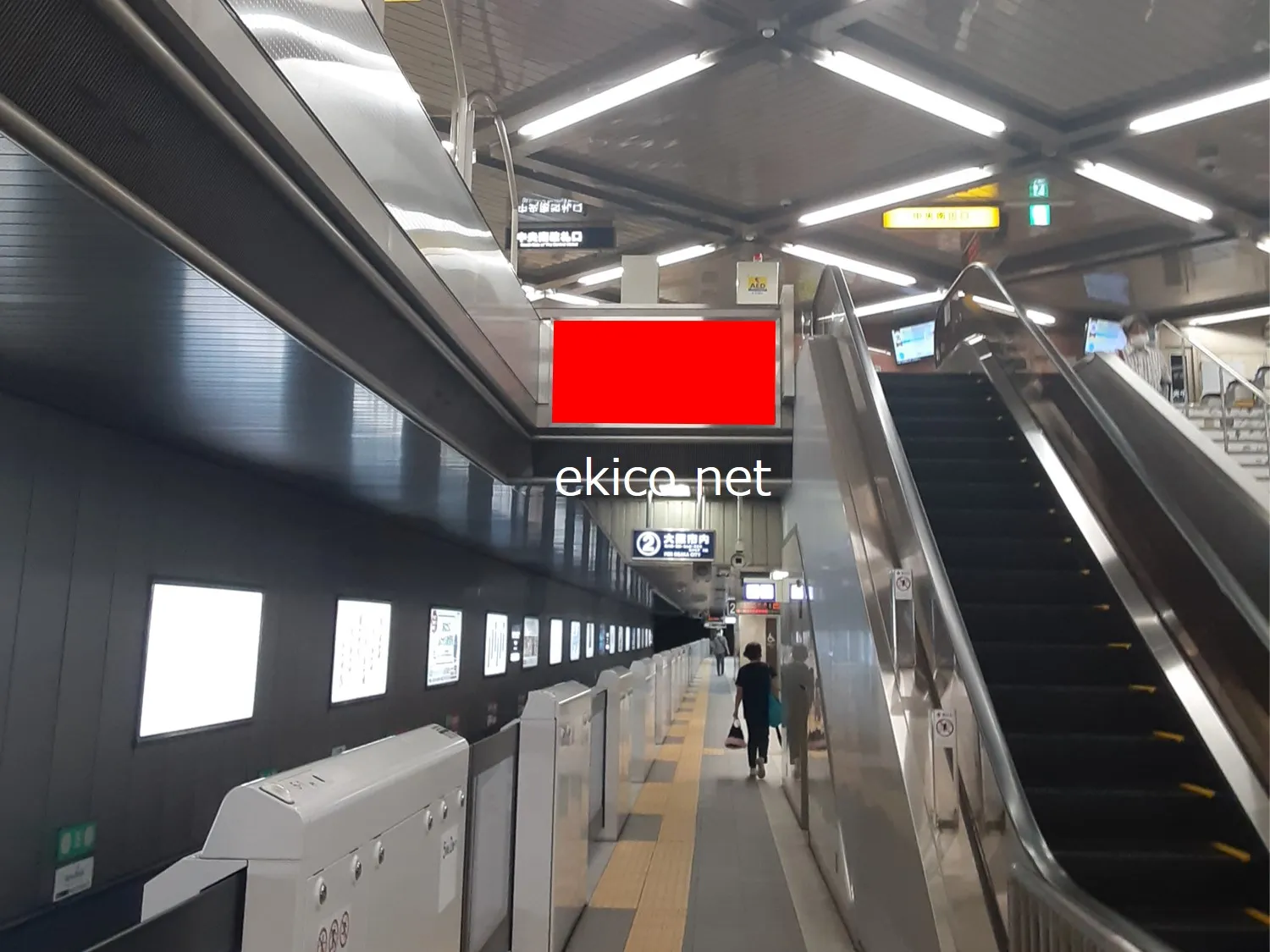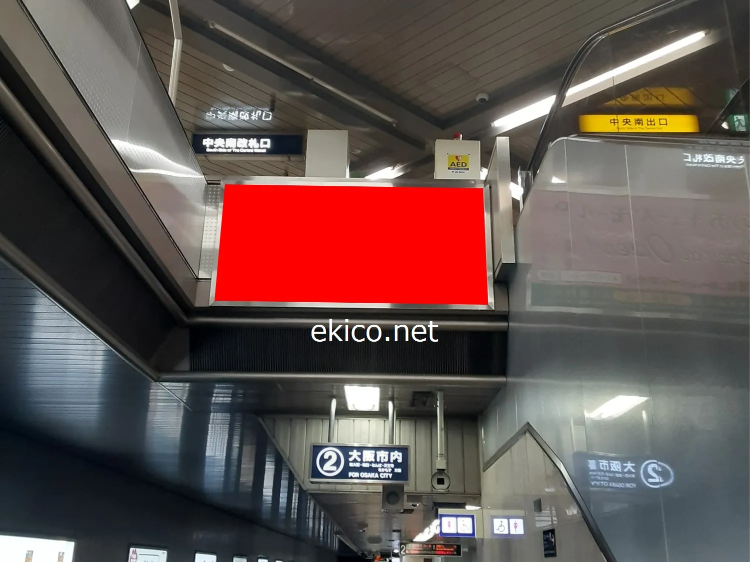 中央南改札の上りエスカレーター横に設置されているため、ホームから改札へ向かう人が目にする広告です。