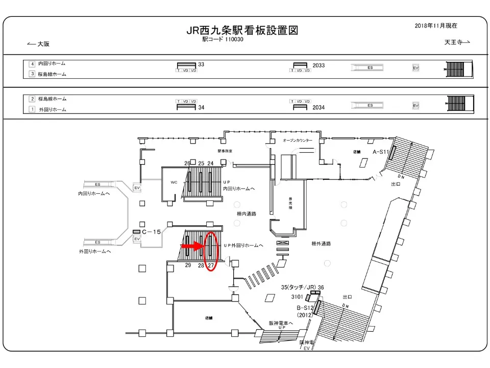 【看板】JR 西九条駅 階段正面 No.27