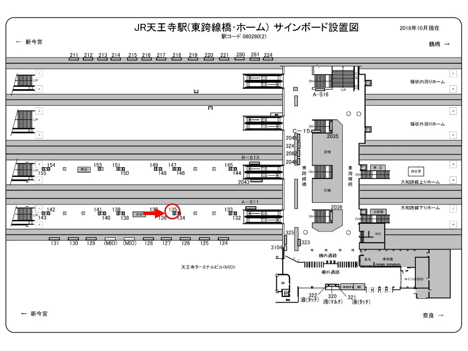 【看板】Osaka Metro谷町線天王寺駅 ホーム No.1-215