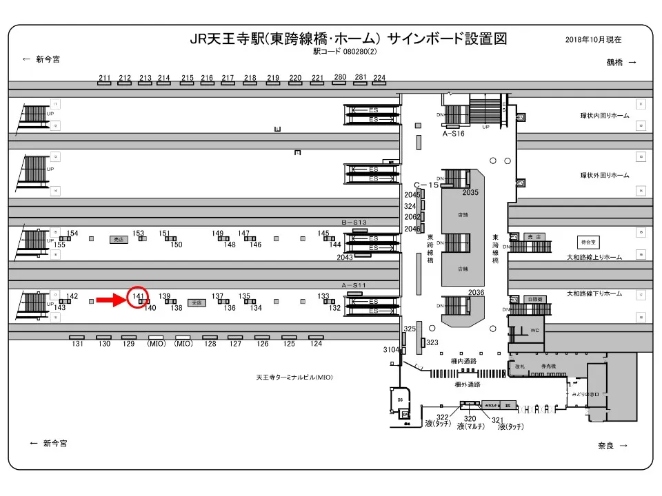 【看板】Osaka Metro天王寺駅 ホーム No.2-1