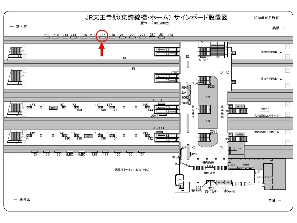 【看板】Osaka Metro谷町線天王寺駅 ホーム No.1-218