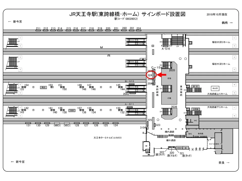 【看板】Osaka Metro天王寺駅 ホーム No.2-1