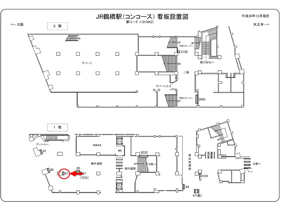 【看板】OsakaMetro 鶴橋駅 コンコース No.2-6