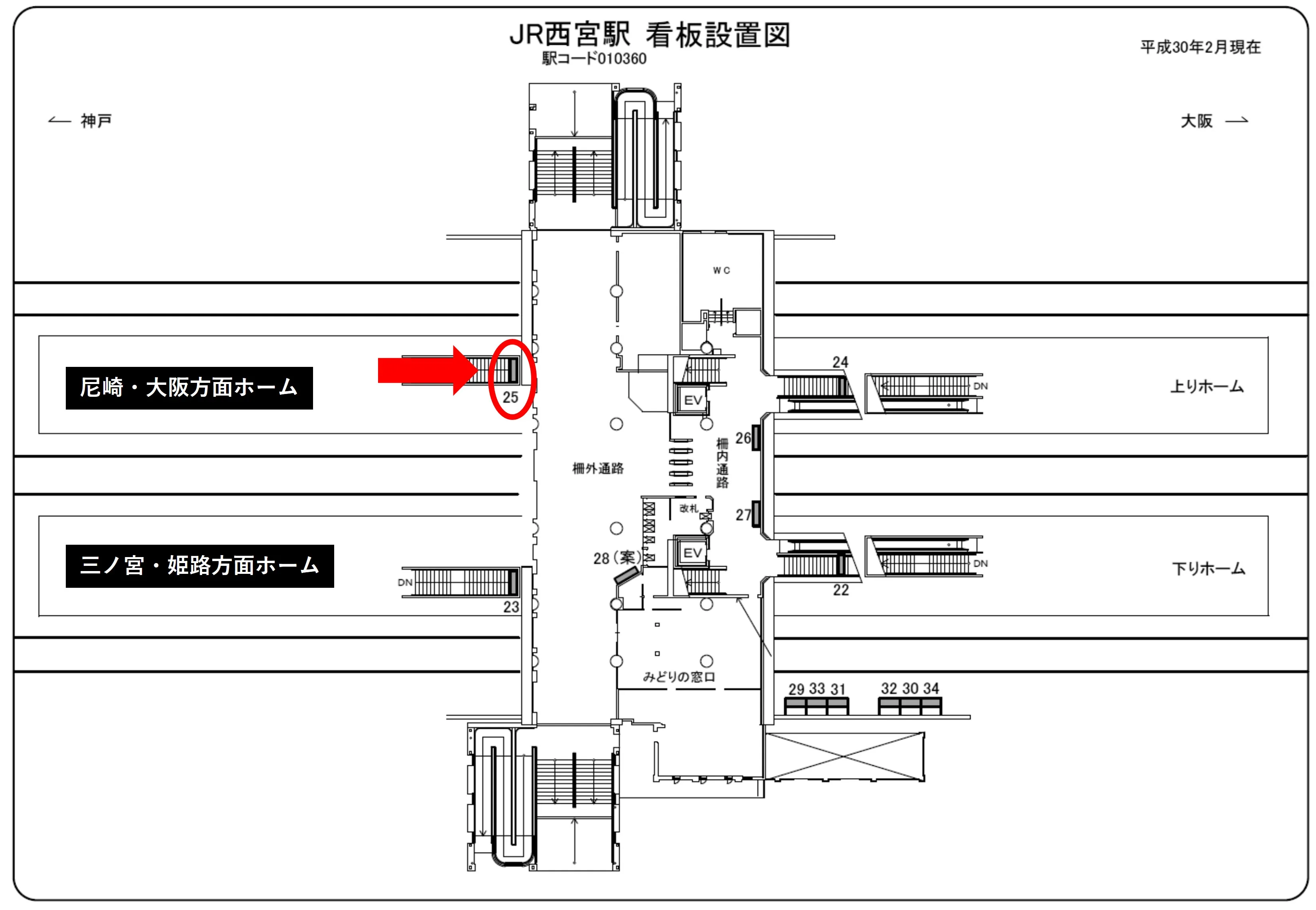 【看板】JR西日本西宮駅 ホーム No.25