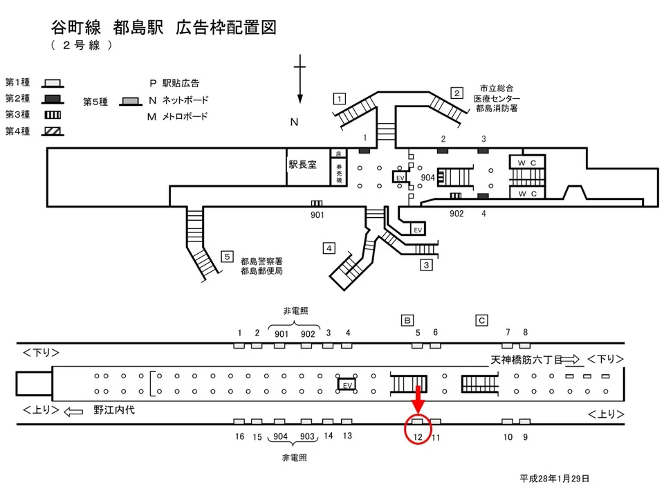 【看板】Osaka Metro都島駅 ホーム No.1-12
