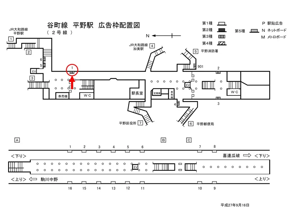 【看板】Osaka Metro平野駅 ホーム No.1-16