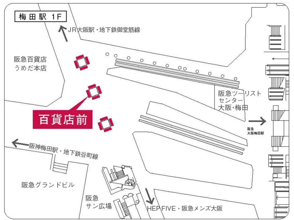 媒体名の通りですが、阪急百貨店うめだ本店前にあるだけでなく、