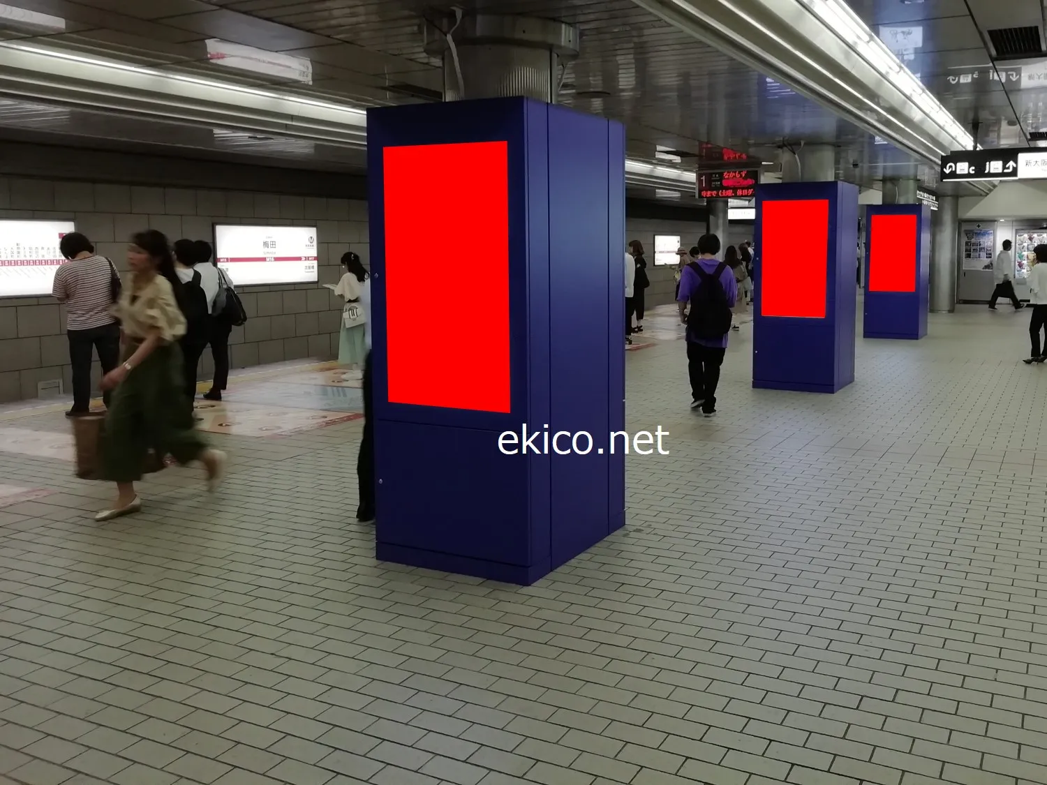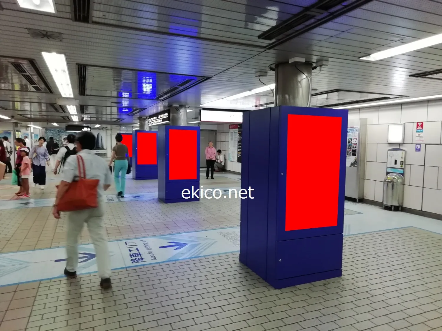 なんば・天王寺方面のホームに設置されています。Osaka Metro内では一番乗降人員が多い駅となっています。千里中央方面から梅田で降りる方や、他線から乗り換えで利用される方など、多くの人に訴求できます。