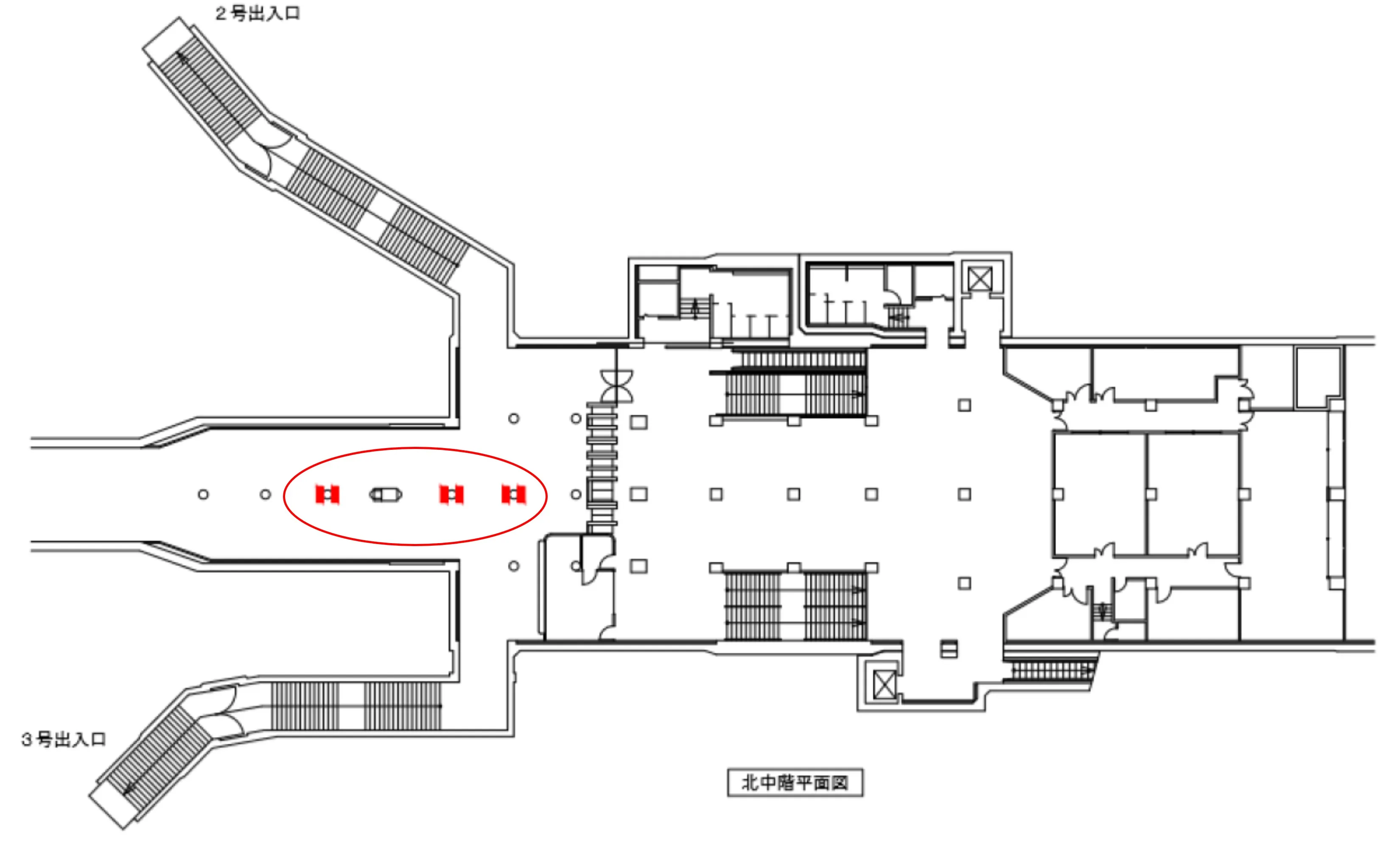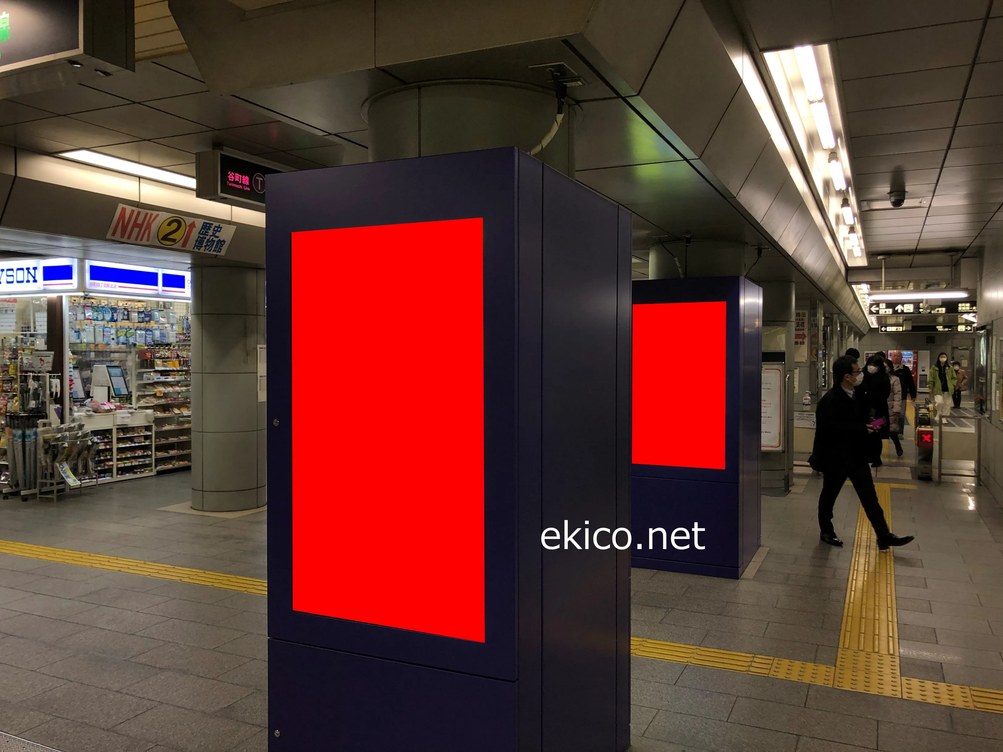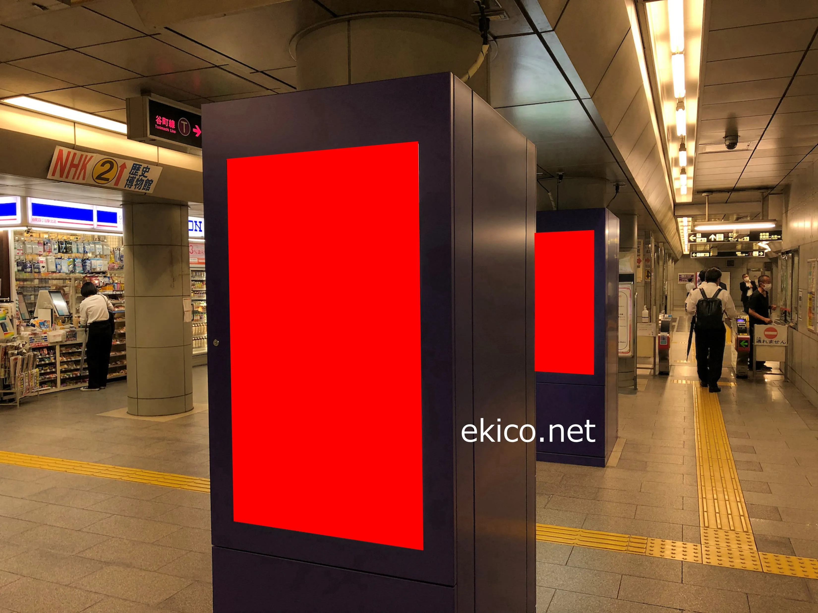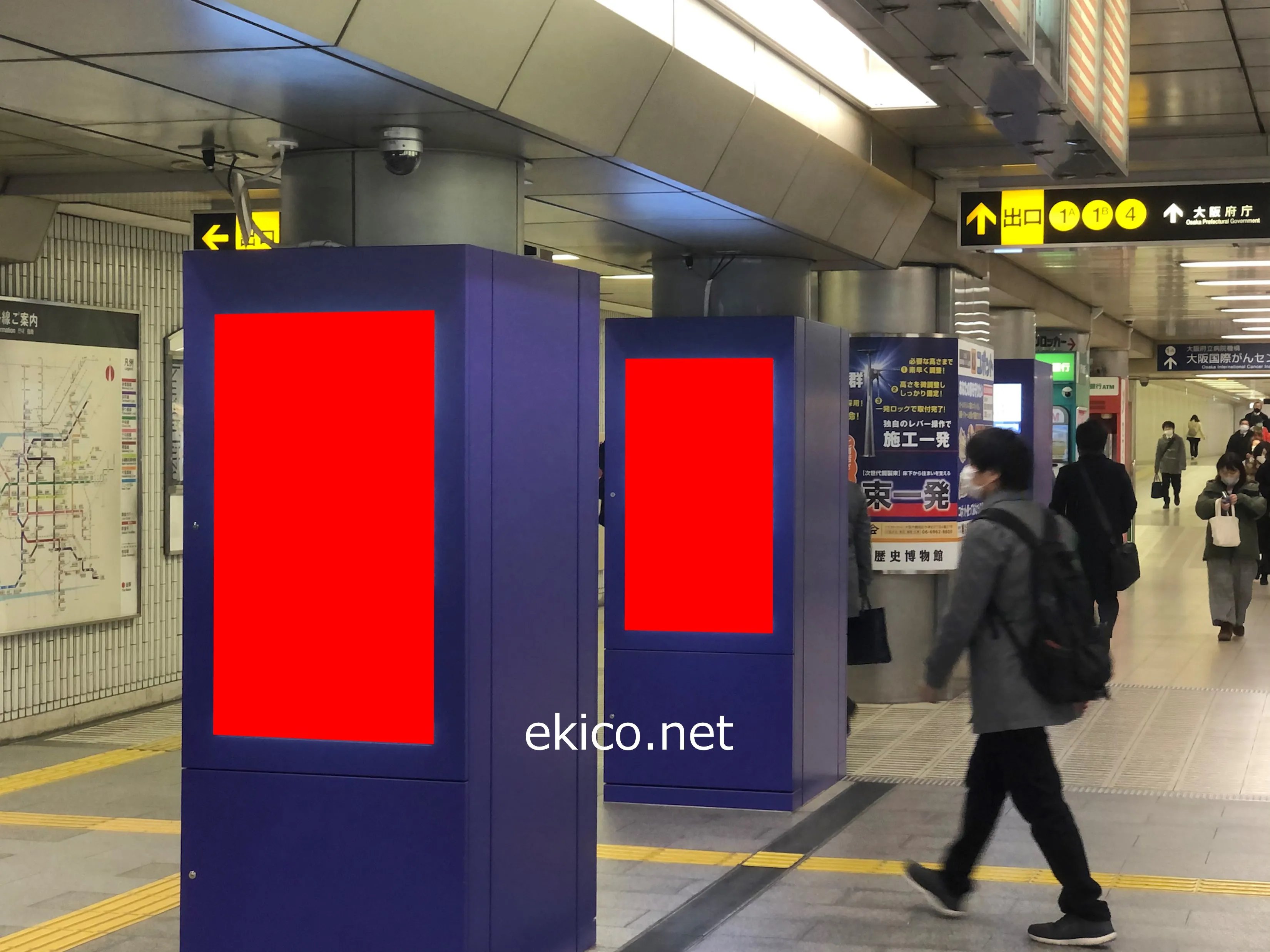 北改札口付近に設置されてるサイネージです。中央線と谷町線が乗り入れる駅となっており、周辺にはNHKや大阪歴史博物館などの施設があります。