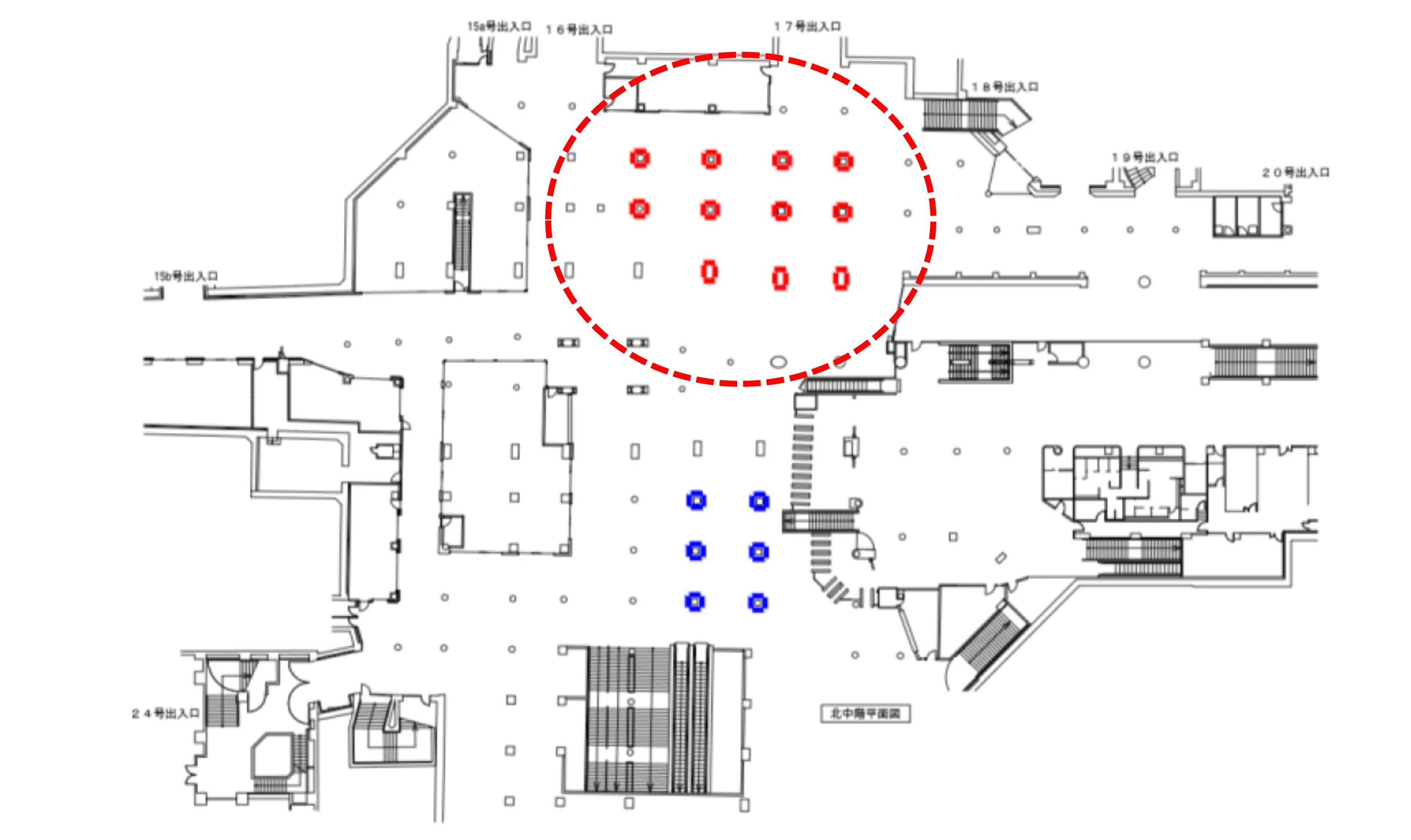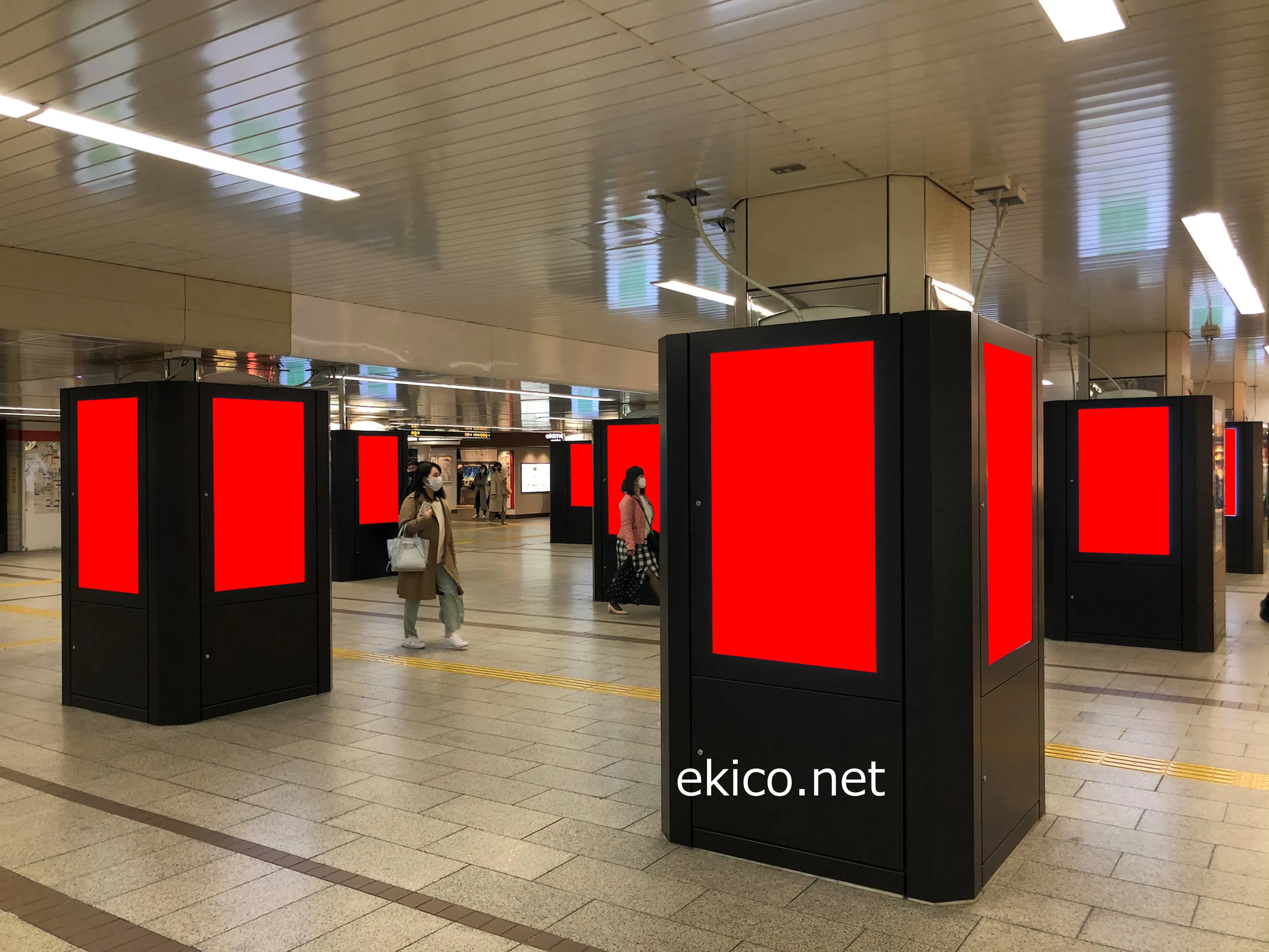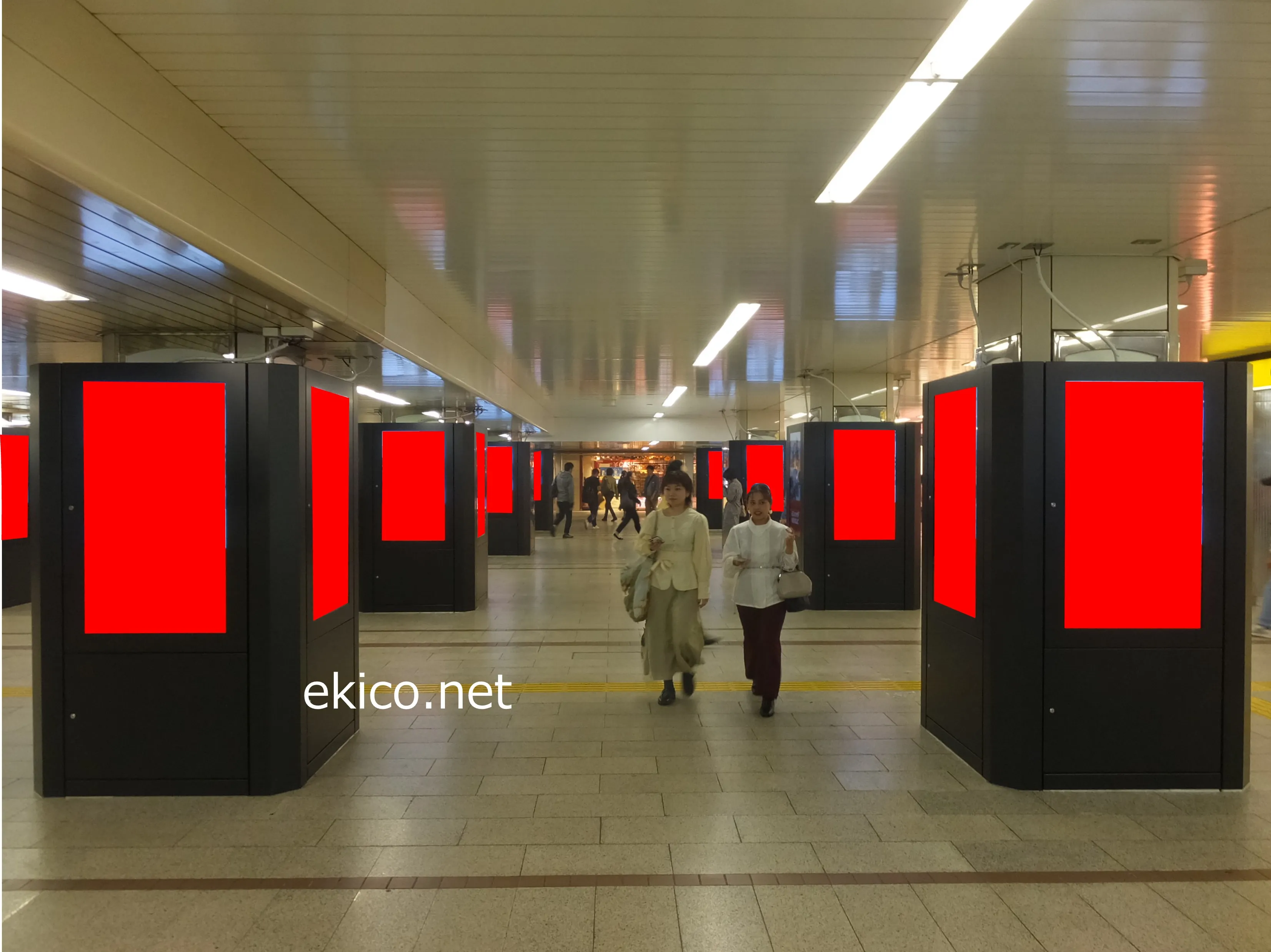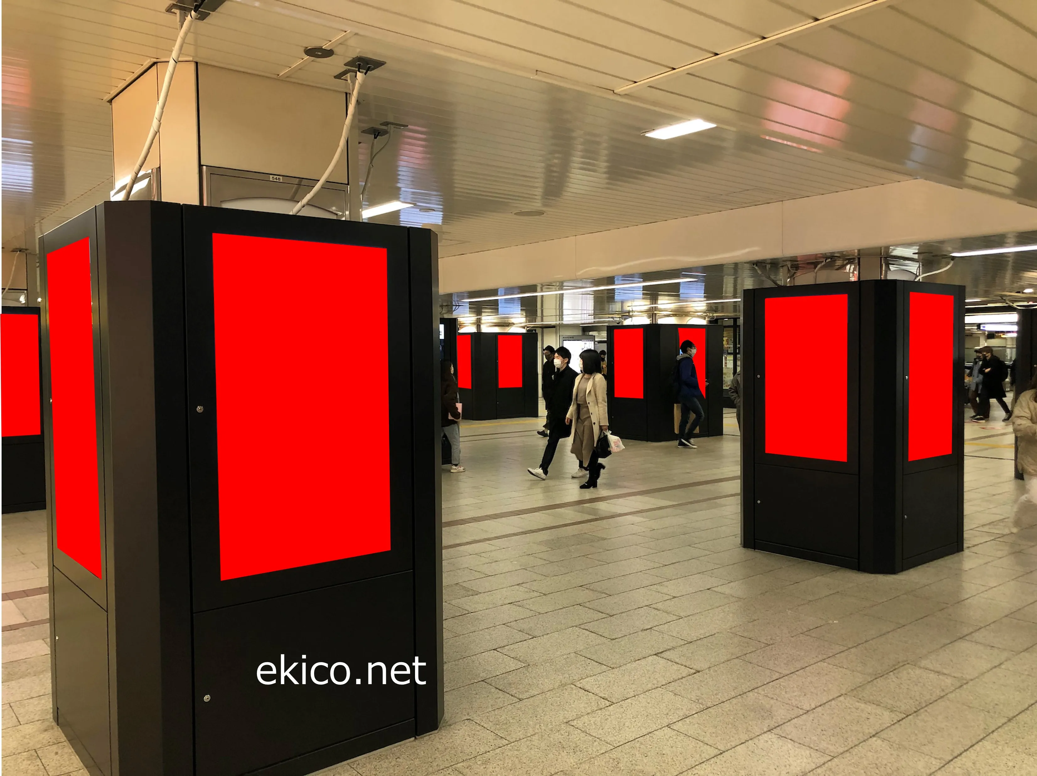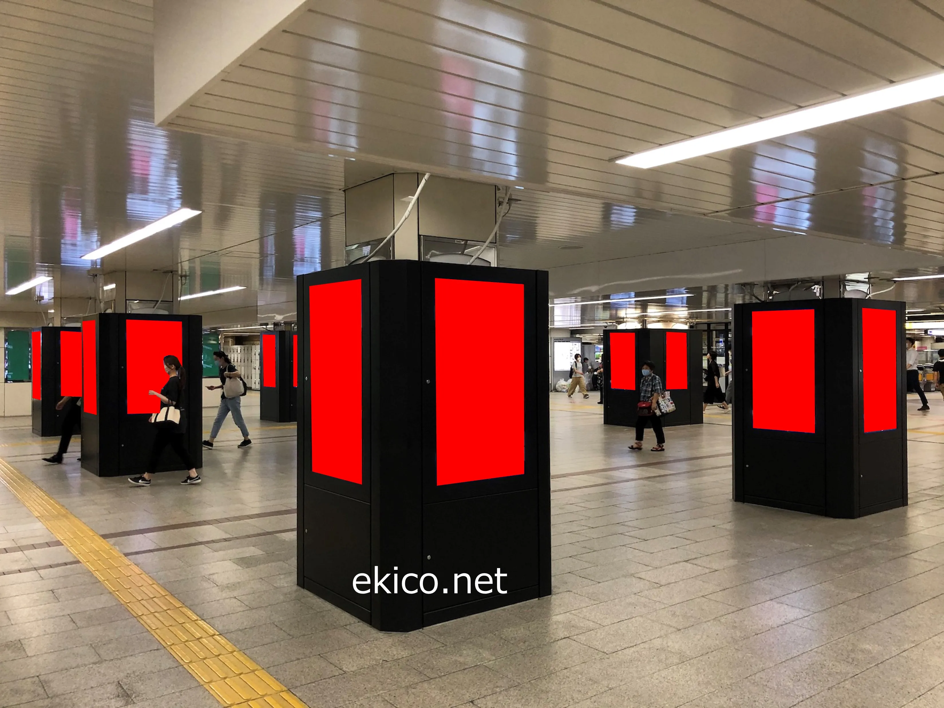 なんば駅の改札外コンコースに設置されています。近鉄や南海電車への乗り換えや、マルイやなんばウォークなどの商業施設の利用者など、通行量が非常に多い場所になります。
