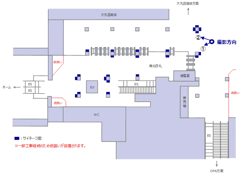 心斎橋大丸本館や北館、心斎橋筋商店街、心斎橋OPA、アメ村方面など、若者が集まる繁華街の最寄り改札に29面も集中掲出されるので、駅利用者へのリーチが期待できます。