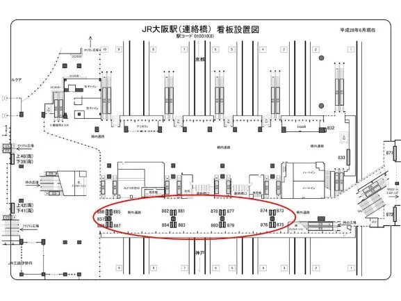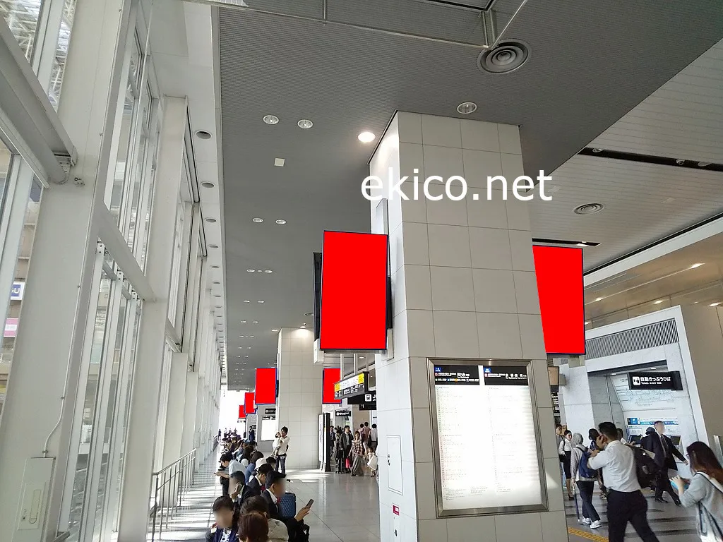 関西エリア最大のターミナル駅大阪駅連絡橋口にデジタルサイネージを掲出。連絡橋口から大丸梅田店、ルクア、ルクアイーレなど利用者に接触頻度が高い場所です。