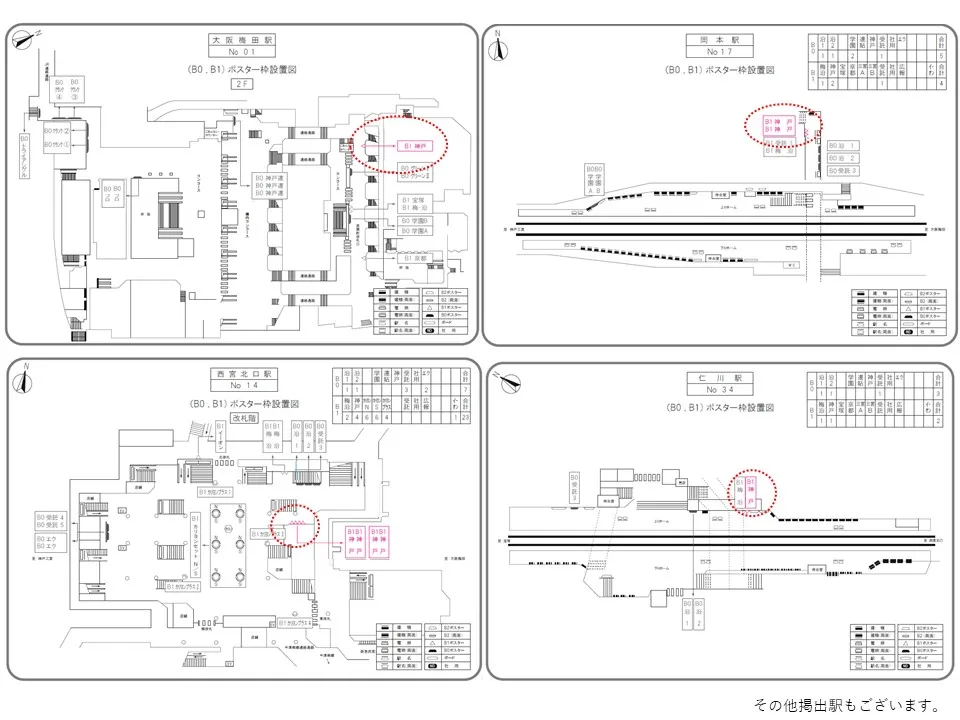 ・4枚掲出駅 西宮北口、 ・3枚掲出駅 塚口
